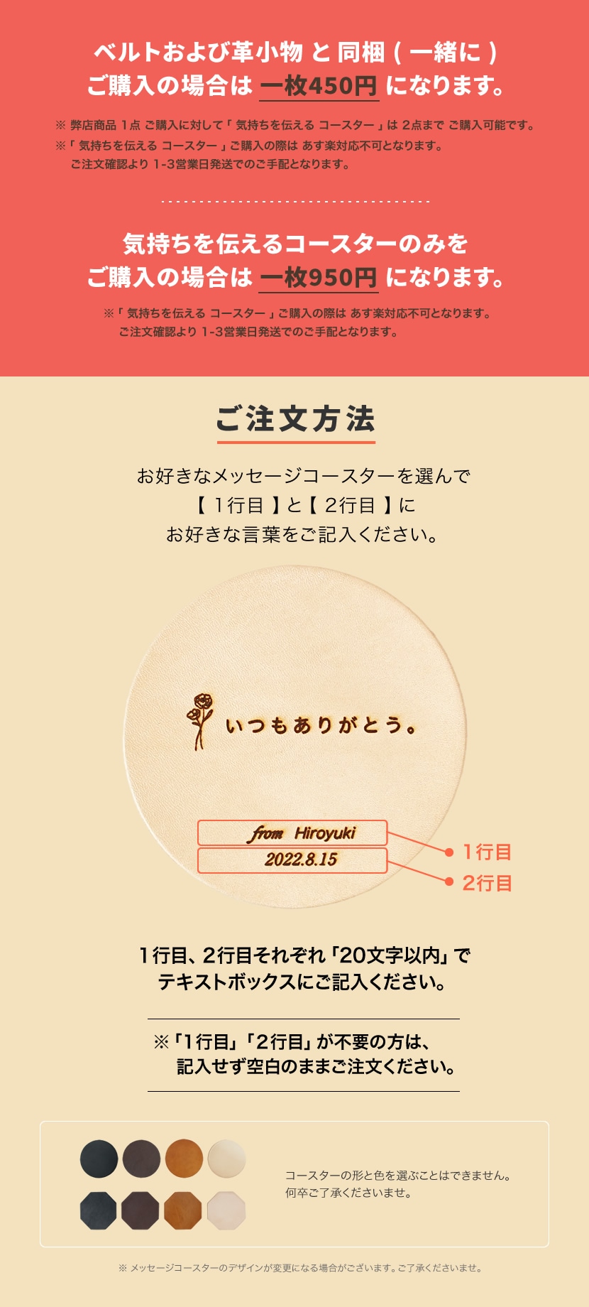 メッセージコースター > 本革メッセージコースター 名入れ blht0006