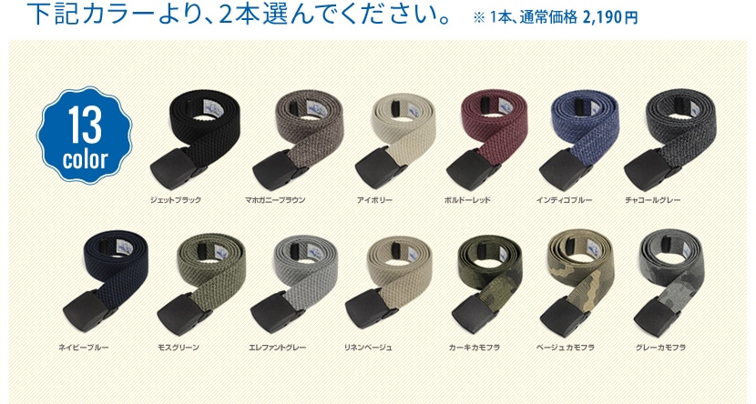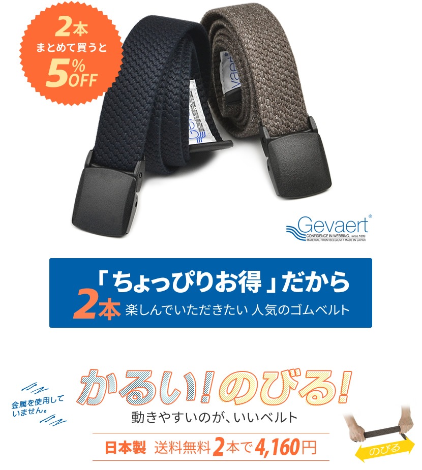 【5% OFF】かるい!のびる!ベルトラボで人気のゲバルトベルト2本まとめて買うと5%OFF! |