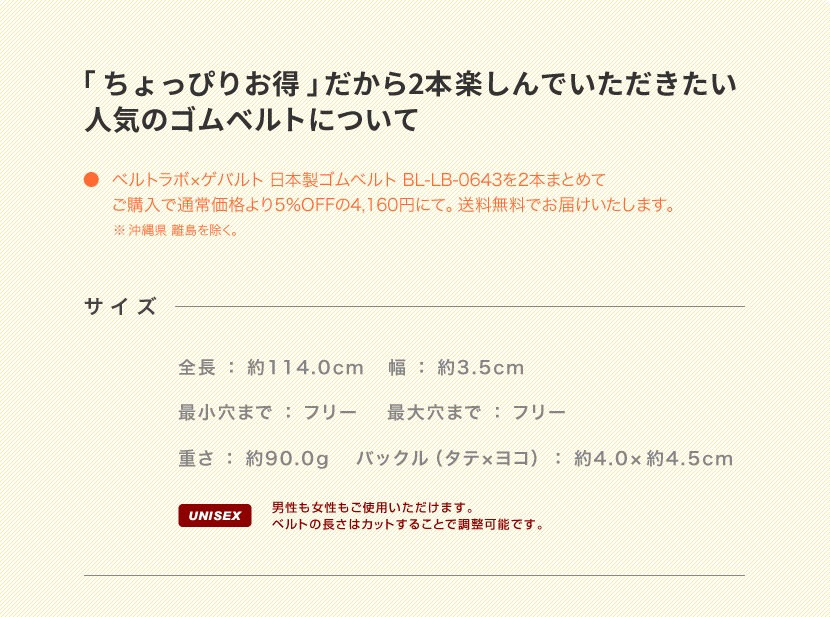 | 「 ちょっぴりお得 」だから2本 楽しんでいただきたい 人気のゴムベルト |