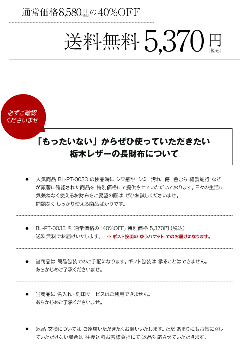 長財布 > 【訳ありセール 40%オフ blpt0033】[pot] 栃木レザー 長財布 blpt0077
