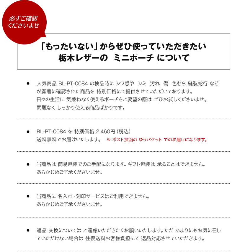 OUTLET SALE! > 【訳ありセール 40%オフ blpt0084】[pot] 栃木レザー ポーチ (Sサイズ) blpt0104