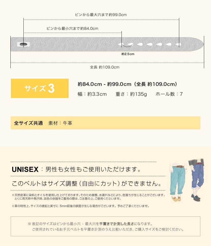 2年前に購入し毎日愛用してきました。バックルが無いのは斬新で掛けやすい、外し易い、屈む事が多いので楽でした。革もヨレなく全く問題ないんですが、少々手荒く扱ったのかビットのネジが外れて抜けてしまいました。もっとネジ部分に太さが必要かと思います。